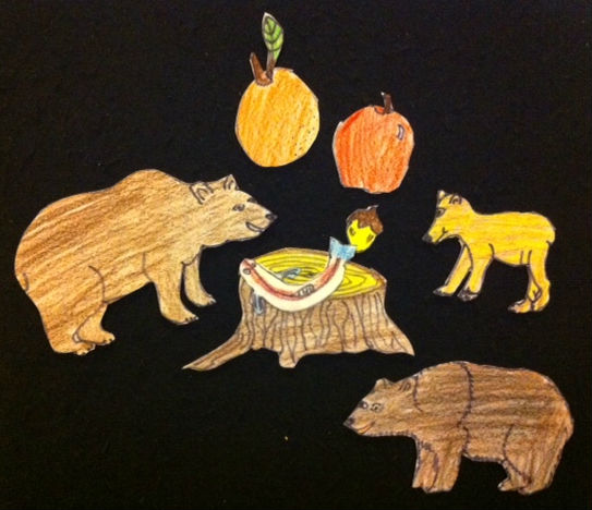 Mama bear and Little Bear woke up hungry after their long winter’s nap. They went to the stump where they usually ate. “Mama,” asked Little Bear, “Where’s the food?” Mama laughed. “We have to go find it.” she told Little Bear. “Why don’t you see if you can find us some blueberries.”