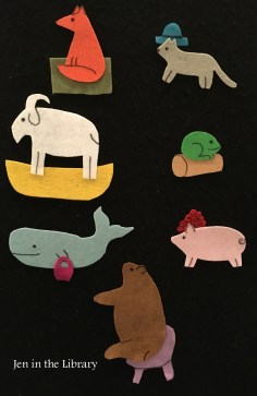 This was my first time reading Press Here in a group setting, and I wasn’t exactly sure how it would go. I did have a gaffe where I pressed a dot to my left, instead of to the audience’s left, so I need to make sure and remember that the next time I tell the story. It did make a few kids want to come up and touch the pages, but for the most part having the kids do the activities with me from their seats worked just fine. I would use it again.