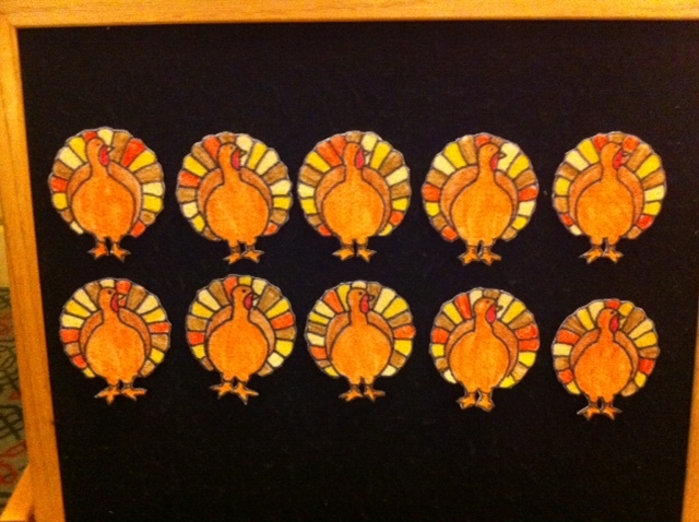 Here’s a turkey. (Place the turkey on the flannelboard.)